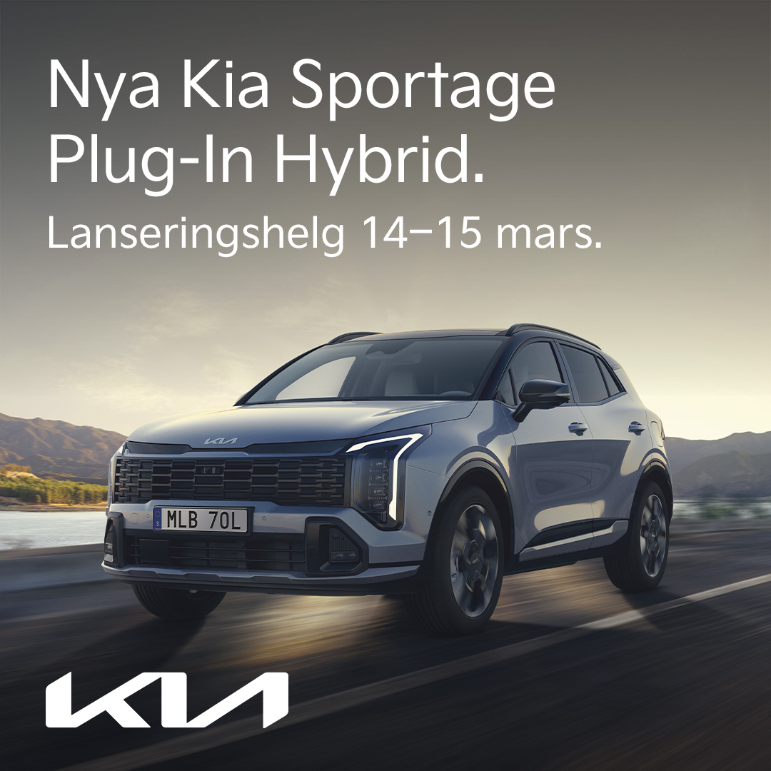 Nya Kia Sportage Plug-In Hybrid är här. Med en räckvidd på upp till 65 km på el, 288 hk, fyrhjulsdrift (AWD) och innovativ teknik är den skapad för ett aktivt liv. Välkommen på lanseringshelg 14–15 mars.