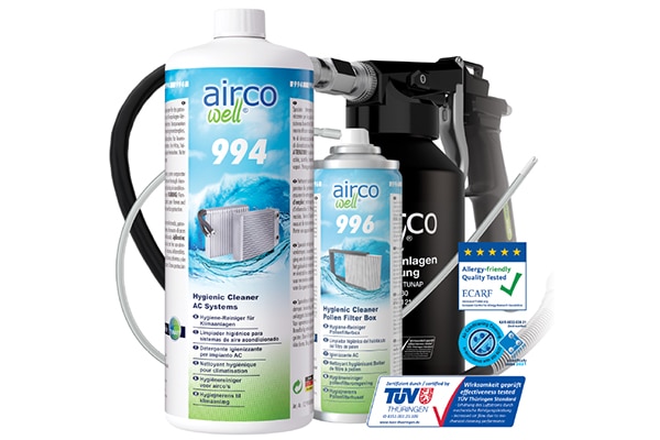 Tack vare det specialtillverkade rengöringsmedlet airco well® kan föroreningar och avlagringar avlägsnas från din klimatanläggning snabbt och effektivt – och du kan få ett hälsosammare inomhusklimat i din bil.